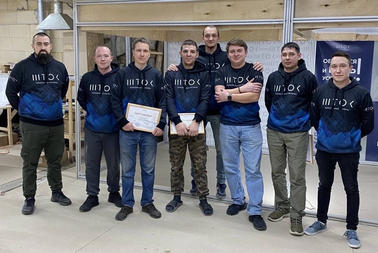 Обучение проходит в городе Чебоксары на производстве компании “Ваш выбор”. Опытные монтажники Данис и Евгений рассмотрят все случаи монтажа ШТОК на подготовленных стендах, а Юлия, наш менеджер по продажам, расскажет как взаимодействовать с дизайнерами и дорого продавать потолки по системе ШТОК.